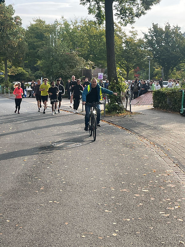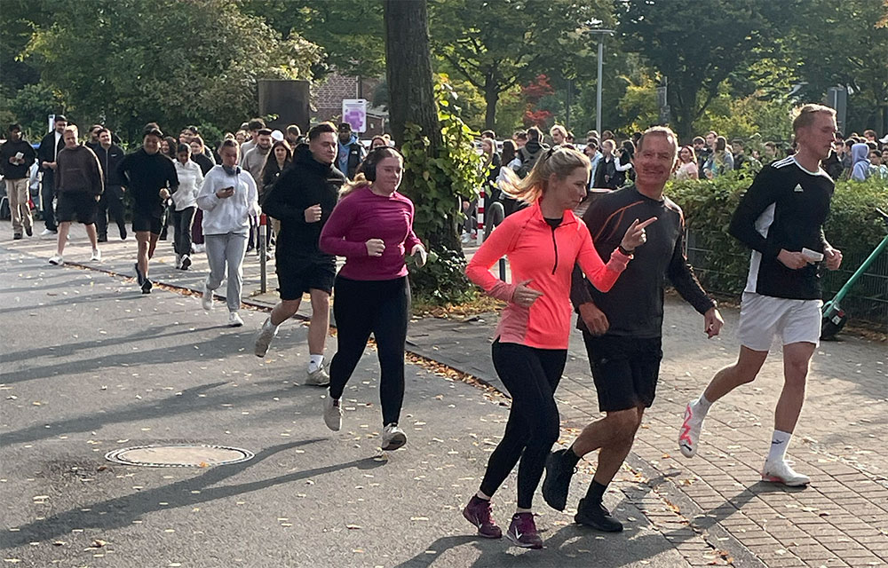 Die Aufgabe: In 60 Minuten möglichst viele Runden absolvieren. Für jede gelaufene Runde gab es dann von den zahlreichen Sponsoren, insbesondere aus der Elternschaft, von Freunden oder auch den Ausbildungsbetrieben einen individuellen Geldbetrag.
