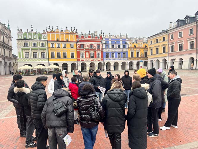 Die Tage in Lublin waren geprägt von vielfältigen Workshops, die es uns ermöglichten, in die polnische Kultur, Sprache, Geschichte und das alltägliche Leben einzutauchen. Eine besondere Art die sehenswerten Städte Lublin und Zamość zu erkunden, bot sich uns durch die Teilnahme an einem Krimirätsel, das nicht nur unsere detektivischen Fähigkeiten herausforderte, sondern uns auch die historischen und kulturellen Geheimnisse dieser Städte auf eine besondere Weise näherbrachte. In international-gemischten Gruppen stellten sich die SchülerInnen diesen von den polnischen Projektteilnehmern selbst erstellten Krimirätseln.
