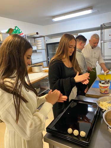 Ein besonderer Höhepunkt der Reise war der letzte Abend, an dem wir von dem Eigentümer des Hotels, in dem wir die Woche über untergebracht waren, gelernt haben, wie man das traditionelle polnisches Gericht Pierogi (gefüllte Teigtaschen) zubereitet. Das gemeinsame Kochen war ein schöner Abschluss einer Woche, an die wir uns noch lange zurückerinnern werden.
