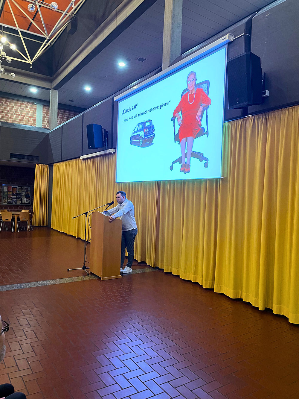 Kerkeling berichtete aus seiner Zeit bei der Autohausgruppe Weller, wo er maßgeblich an der Markteinführung der chinesischen Automarke MG beteiligt war – ein Beispiel dafür, wie internationale Marken zunehmend Druck auf den heimischen Markt ausüben. Darüber hinaus zeichnete er das Bild eines sich wandelnden Kunden: von „Oma Hetti, die sich etwas gönnen möchte“, hin zum kritisch und gut informierten Kunden, der von Verkaufspersonal deutlich mehr Kompetenz erwartet.