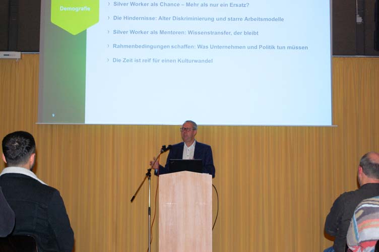 Im zweiten Vortrag nahm Klaus Ostermann, Personalleiter bei der Westdeutschen Lotterie GmbH & Co. OHG das Publikum mit in die Welt des modernen Personalmanagements. Von Generationenwandel über den demografischen Umbruch bis hin zu “New Work” spannte er den Bogen zu den speziellen Anforderungen des Personalwesens. Besonders das Wissensmanagement in einer stark spezialisierten Branche wie das Lottogeschäft, ist enorm wichtig. Durch das Wegbrechen der Boomer-Generation in die wohlverdiente Rente in den nächsten 12 Jahren wird das die größte Herausforderung des Unternehmens sein.